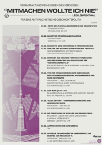 Veranstaltungsreihe gegen das Vergessen und für eine antifaschistische Geschichtspolitik Die Veranstaltungsreihe ist dem Gedenken an die Opfer des Nationalsozialismus gewidmet. Sie nicht zu vergessen, begreifen wir als zentrale Aufgabe eines emanzipatorischen Antifaschismus. Am 27. Januar 1945 befreite die Rote Armee das Vernichtungs- und Konzentrationslager Auschwitz. Bis heute steht Auschwitz exemplarisch für die nationalsozialistische Politik der …